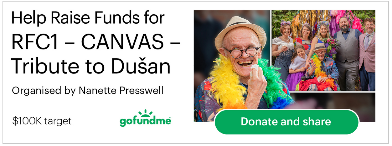 Support to Stardust Art Exhibition Dr Nanette Presswell is raising funds for research into RFC1 CANVAS (a type of genetic ataxia) at the Bruce Lefroy section of the Murdoch Childrens Research Institute Melbourne. Click HERE for details on HOW TO DONATE to the RFC1 CANVAS - Tribute to Dusan